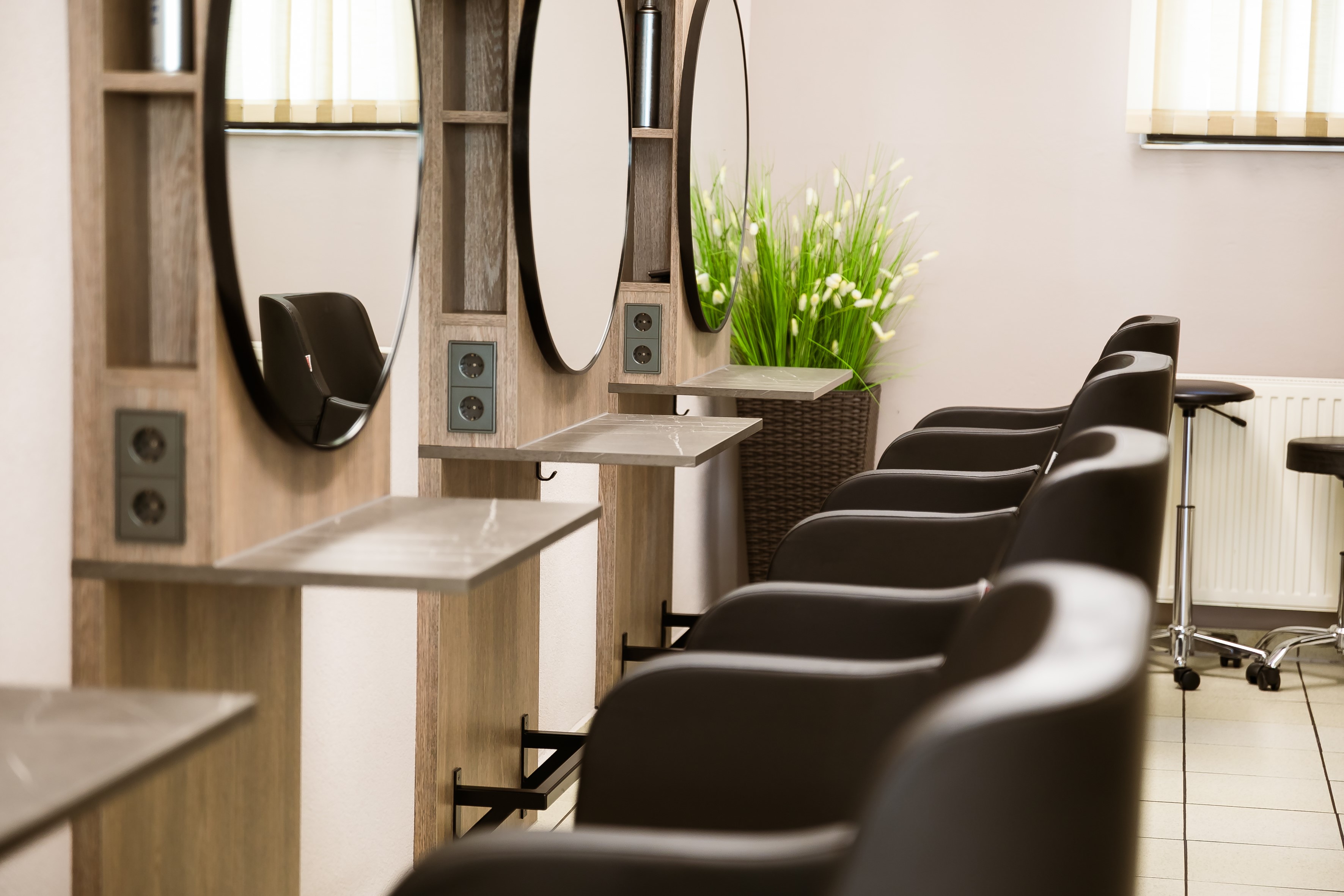 Viel Licht, genug Platz und elegante Gemütlichkeit: Wir haben unseren Salon mit viel Liebe zum Detail gestaltet und ihn so zu einem Wohlfühlort